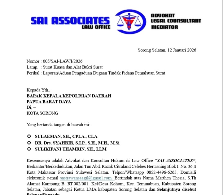 Anggota Babak Barat Baru Daya Diduga DPRK Dua Gunakan Laporkan LMA Palsu Papua Polda Selatan Siap Sorong Surat